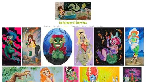 Candy Weil, also known as Candy Wild, is a California-based artist celebrated for her vibrant contributions to the lowbrow and pop surrealism art scenes. Her work seamlessly blends retro Americana with playful, edgy themes, drawing inspiration from tiki culture, classic monsters, pin-up aesthetics, and vintage cartoons. Each piece showcases her distinctive style, characterized by bold colors and expressive characters.