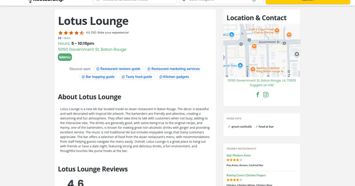 In the vibrant tapestry of Baton Rouge, the Lotus Lounge stands as a beacon of exotic allure on Government Street. This establishment is not just a tiki bar; it is a sensory journey through time and culture, where the whispers of Polynesian breezes meet the sultry rhythms of Louisiana's jazz heritage. The interior is a kaleidoscope of bamboo and rattan, with dimly lit lanterns casting playful shadows that dance across the walls adorned with vintage island memorabilia.
