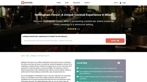 In the bustling streets of Milan, where fashion and history intertwine, Nottingham Forest stands as a beacon of eclectic charm. This isn't your typical tiki bar; it's a kaleidoscope of cultures, a place where the exotic meets the avant-garde. Located at 1 Viale Piave, the bar's exterior is unassuming, but step inside, and you're transported to a world where the boundaries of time and place blur.