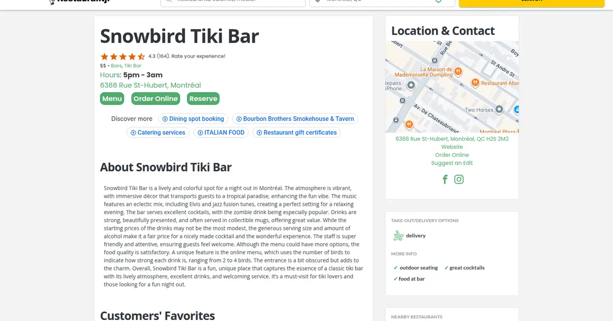 Snowbird Tiki Bar attracts a diverse clientele, from curious locals to international travelers seeking a unique experience. The bar's playlist is a nostalgic mix of surf rock and island rhythms, setting the perfect backdrop for lively conversations and laughter. As you sip your drink, the scent of tropical flowers mingles with the crisp Montreal air, creating an unforgettable sensory tapestry.