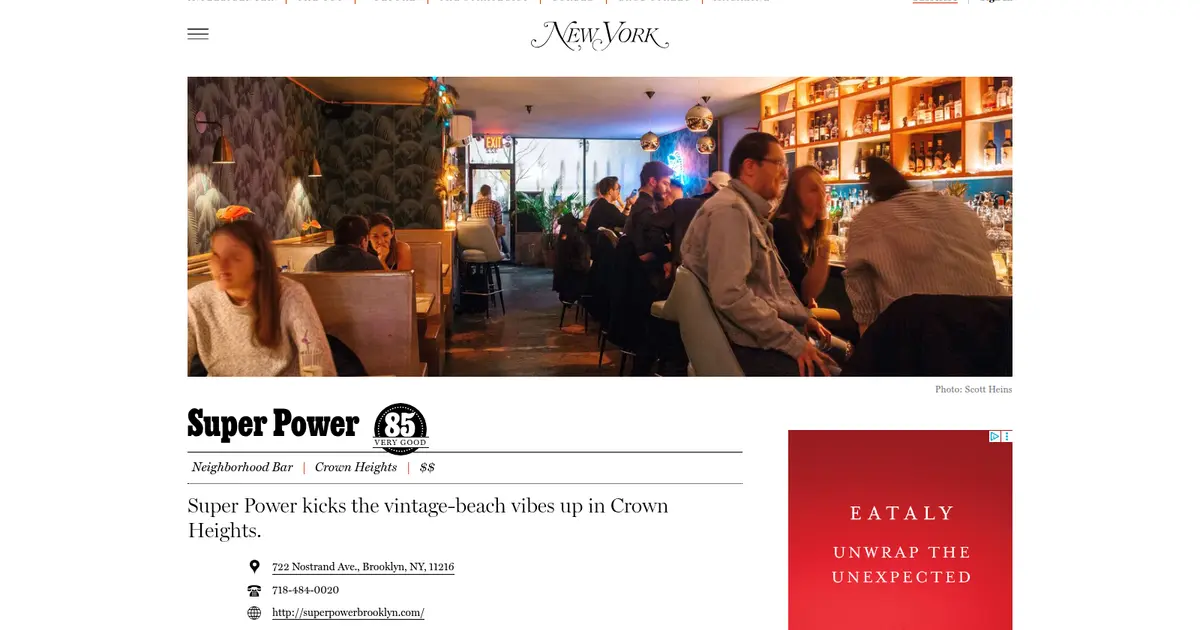 On the bustling stretch of Nostrand Avenue in Brooklyn, Super Power stands as a vibrant testament to the eclectic spirit of New York City. This tiki bar, with its kaleidoscope of colors and retro-futuristic decor, offers a playful nod to mid-century Polynesian pop culture while embracing the urban energy of its surroundings. The interior is a whimsical blend of bamboo, neon lights, and vintage surfboards, creating an atmosphere that feels both nostalgic and refreshingly modern.
