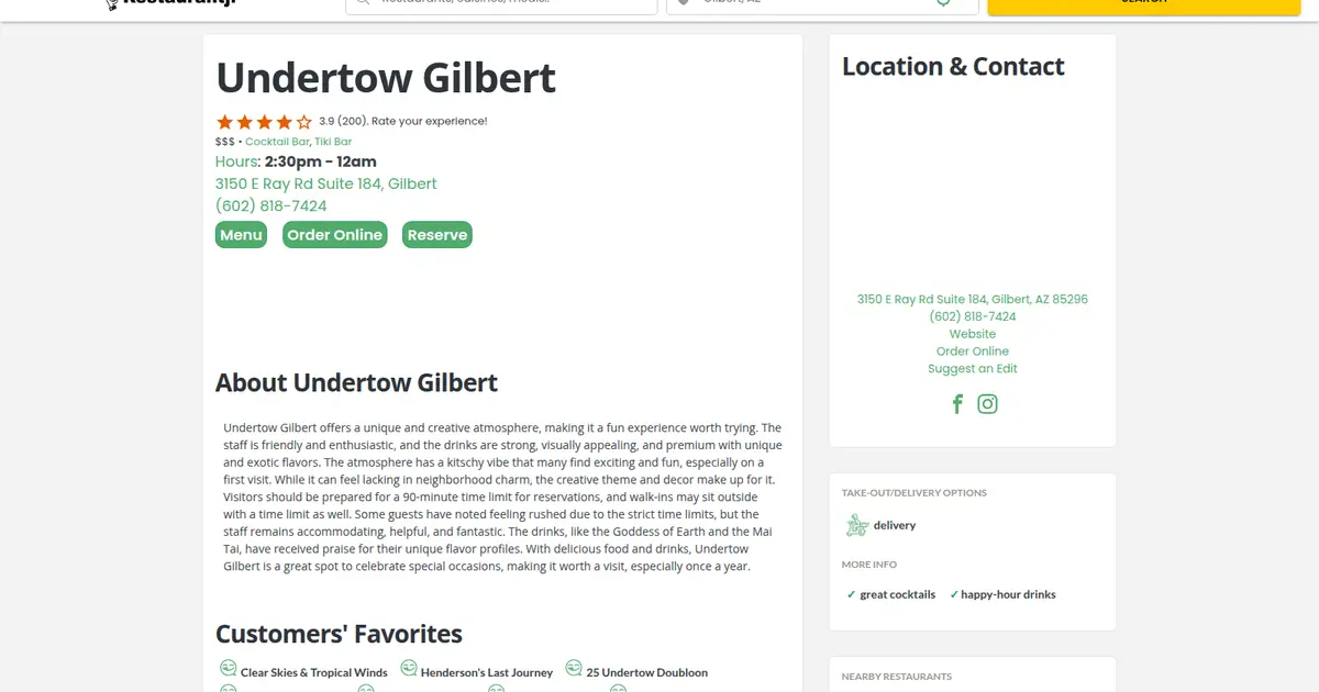 In the vibrant tapestry of Gilbert, Arizona, Undertow Gilbert emerges as a portal to a bygone era of maritime adventure. This tiki bar, located on East Merchant Street, is a masterful blend of Polynesian allure and nautical nostalgia. The interior is a visual feast, with dimly lit lanterns casting a warm glow over intricately carved wooden panels and vintage maritime artifacts. The air is filled with the subtle scent of coconut and pineapple, mingling with the salty tang of the sea.