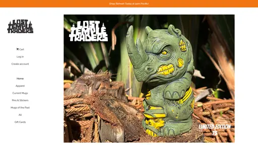 Lost Temple Traders creates officially licensed and custom tiki mugs, apparel, and collectibles inspired by pop culture, adventure, and escapism. Known for high-quality ceramics and collaborations with beloved franchises, they blend retro tiki aesthetics with modern fandoms—from pirates to theme park lore. Each release is produced in limited runs, often selling out quickly among collectors.