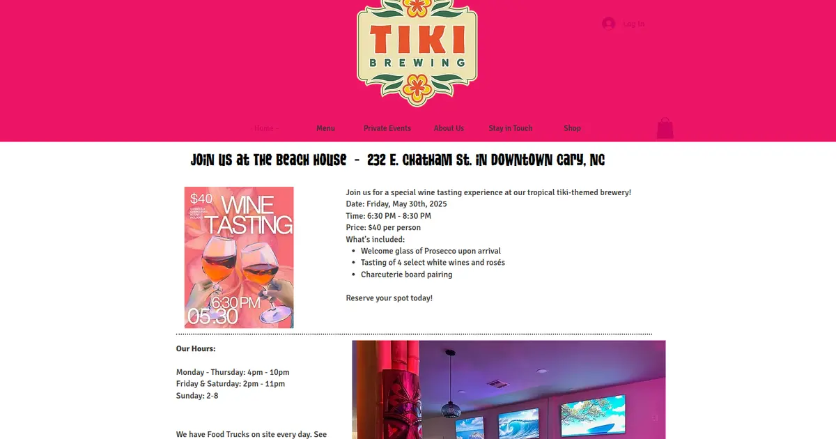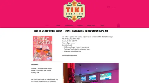 Tiki Bar Image Destination Type Classic Tiki Bar Destination Theme Caribbean / Island Fusion This appears to be a brewery that has a cocktail menu with light tiki decor. Google Map & Business Info Address 232 E Chatham St Cary , NC 27511 United States ☰ Quick Info