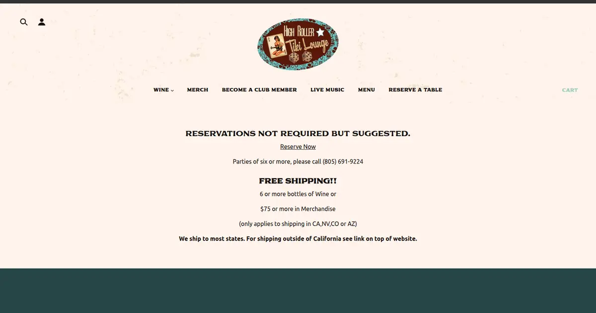 High Roller Tiki Lounge is a playful collision of tiki fantasy and wine country spirit, tucked inside the storybook town of Solvang, California. This lounge redefines the tropical bar experience with wine-based takes on classic island cocktails. Inside, the vibe is relaxed and whimsical—palm fronds meet pinot noir in a bamboo-framed hideaway lined with vibrant lights and nods to Polynesian pop. It’s not your average tiki bar—it’s a vineyard vacation in a tiki glass.