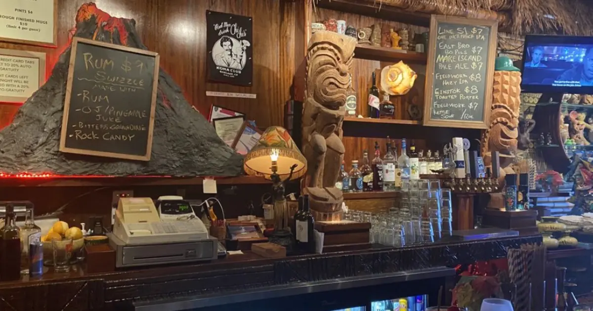 Kona Club in Oakland, California, is a neighborhood tiki bar that blends classic Polynesian decor with a relaxed, dive-bar atmosphere. Established in 2005 by Doug Miller, the owner of nearby Club Mallard, Kona Club’s interior was crafted by renowned tiki designer Bamboo Ben, featuring carvings from Oceanic Arts and Crazy Al Evans. The bar boasts distinctive elements such as a smoke-emitting volcano behind the bar and a life-sized bronze hula girl with swiveling hips.