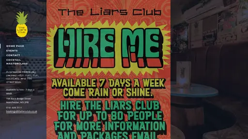 The Liars Club is more than just a bar; it's a cultural landmark that pays homage to Manchester's eclectic spirit. As the night deepens, the rhythmic beats of reggae and calypso fill the air, mingling with laughter and the clinking of glasses, creating a symphony of tropical delight.