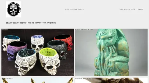 Shima Ceramics is the brainchild of artist Chris Shima, based in Port Costa, California. Since 2015, Shima has been crafting distinctive ceramic pieces that defy conventional categories. His work spans a range of themes, from tropical and nautical to horror and the macabre, reflecting his penchant for exploring the darker facets of art.