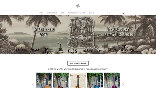 Music / Instruments Image Ukuleles and gear curated with care for the Tiki music scene. Not just instruments—each uke is part of a larger tropical story. ☰ Quick Info